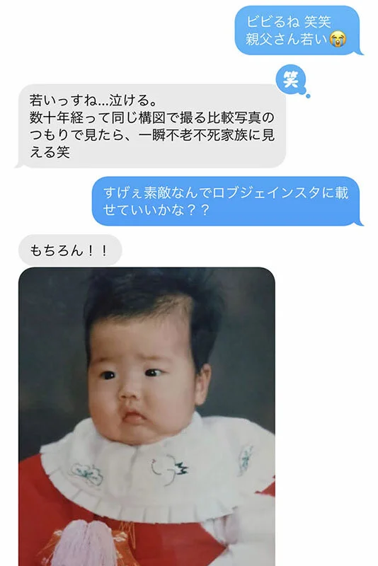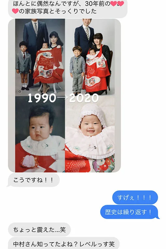 弊社カメラマンが撮影した写真と、奥様が赤ちゃんのとき(30年前)に撮影した写真がソックリ!