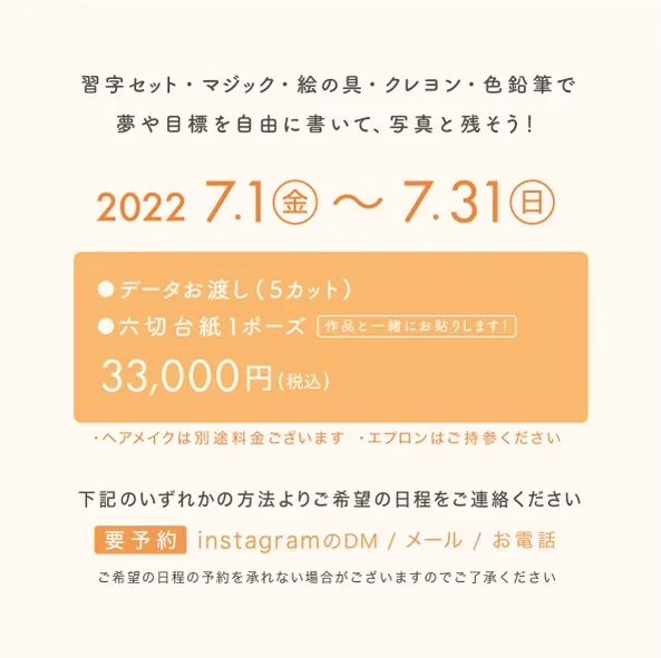 お子様の小さな胸に抱いた夢や目標、今この瞬間感じている想いなど色々な画材を自由に使って楽しく描き残しましょう🎨✏️ありったけの想いを一枚に込めて下さい!!